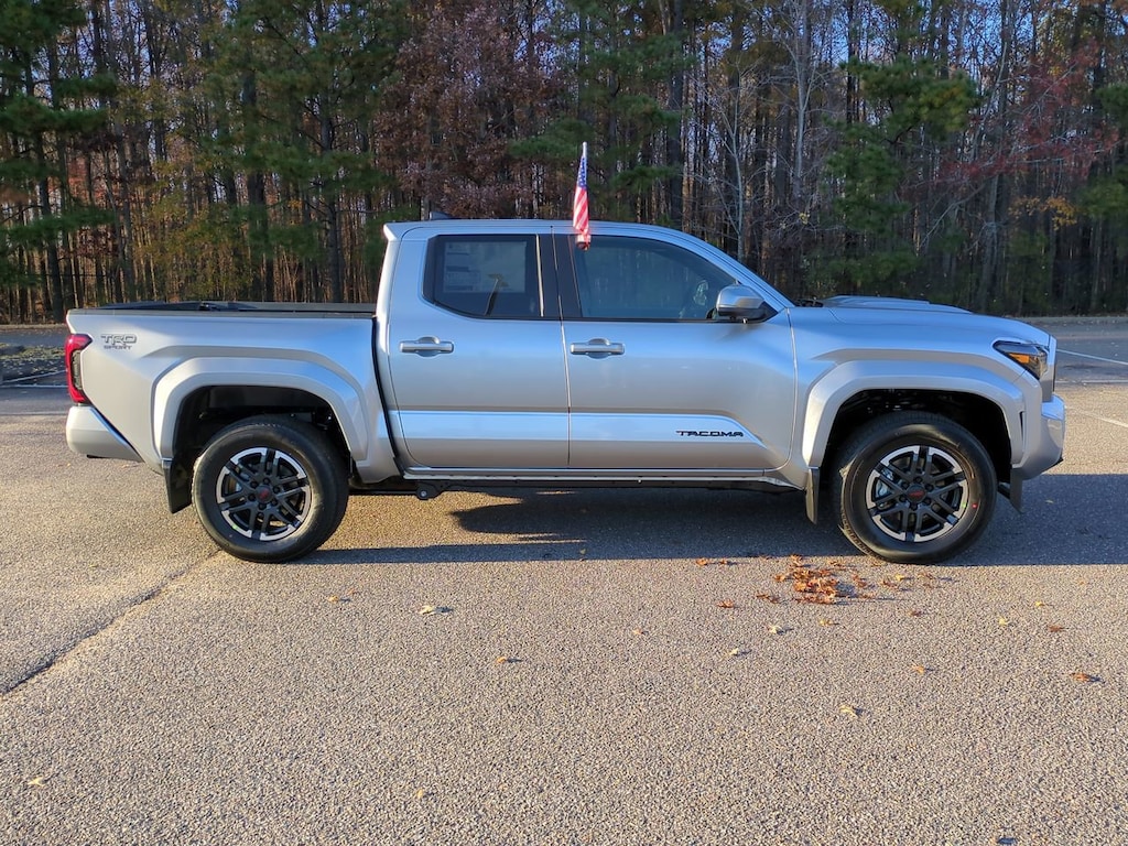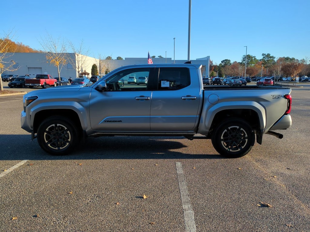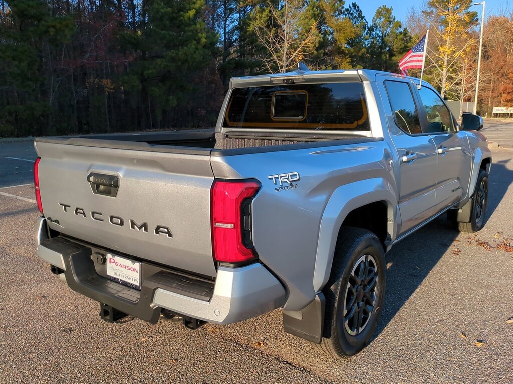 2025 Toyota Tacoma TRD Sport Silver 2.4L 4-Cylinder 4WD 8-Speed Automatic4WD.Price(s) does not include Dealer Processing Fee of $749, licensing costs, registration fees, and taxes.The Optional Features Included on this vehicles are: TRD Sport Premium Package (3D Panoramic View Monitor, JBL Premium Audio, and Radio: 14" Toyota Audio Multimedia w/TRD Premium), 4WD, 3.583 Axle Ratio, 4-Wheel Disc Brakes, 6 Speakers, ABS brakes, Air Conditioning, All Weather Floor Liners (TMS), Alloy wheels, AM/FM radio: SiriusXM, Anti-whiplash front head restraints, Apple CarPlay/Android Auto, Auto High-beam Headlights, Auto-dimming Rear-View mirror, Automatic temperature control, Black Badge Overlay (TMS), Black Tailgate Insert (TMS), Brake assist, Bumpers: body-color, Door Edge Guard (TMS), Driver door bin, Driver vanity mirror, Dual front impact airbags, Dual front side impact airbags, Electronic Stability Control, Emergency communication system: Safety Connect (1-year trial), Exterior Parking Camera Rear, Fabric Seat Trim, Four wheel independent suspension, Front anti-roll bar, Front Bucket Seats, Front Center Armrest, Front fog lights, Front reading lights, Fully automatic headlights, Heated door mirrors, Illuminated entry, Knee airbag, Leather Shift Knob, Leather steering wheel, Low tire pressure warning, Mudguards (TMS), Occupant sensing airbag, Outside temperature display, Overhead airbag, Overhead console, Panic alarm, Passenger door bin, Passenger vanity mirror, Power door mirrors, Power steering, Power windows, Radio: 8" Toyota Audio Multimedia, Rear step bumper, Rear window defroster, Remote keyless entry, Security system, SofTex Seat Trim, Speed control, Speed-sensing steering, Split folding rear seat, Spray-On Bed Liner (TMS), Steering wheel mounted audio controls, Tachometer, Telescoping steering wheel, Tilt steering wheel, Traction control, Trip computer, Turn signal indicator mirrors, Variably intermittent wipers, and Wheels: 18" TRD Sport Alloy.