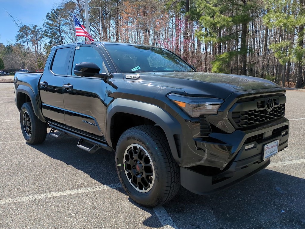 2026 Toyota Tacoma Hybrid TRD Off Road Black 2.4L 4-Cylinder 4WD 8-Speed Automatic2.4L 4-Cylinder.Price(s) does not include Dealer Processing Fee of $749, licensing costs, registration fees, and taxes.The Optional Features Included on this vehicles are: Towing Technology Package (Integrated Trailer Brake Controller and Towing Hitch), TRD Off Road Premium Package (3D Multi-Terrain Monitor, 8-Way Power Driver and Passenger Seat Adjusters, AC Power Inverter, Auto-Dimming Digital Display Rearview Mirror, Digital Key Capability, Dual Zone Automatic Climate Control, Front and Rear Parking Assist with Automatic Braking, Heated and Ventilated Front Seats, Heated Leather-Trimmed Steering Wheel, JBL Premium Audio, Pedestrian Detection, Power Horizontal Rear Window, Power Tilt/Slide Moonroof with Sliding Sunshade, Pre-Wired Auxiliary Switches, Qi-Compatible Wireless Charging, Radio: 14" Toyota Audio Multimedia, SofTex Seat Trim, and TACOMA Stamped Power Open and Close Tailgate), 2.4L 4-Cylinder, 18" Alloy Wheels, 3.583 Axle Ratio, 4-Wheel Disc Brakes, 6 Speakers, ABS brakes, Air Conditioning, All Weather Floor Liners, Alloy wheels, AM/FM radio: SiriusXM, Anti-whiplash front head restraints, Apple CarPlay/Android Auto, Auto High-beam Headlights, Auto-dimming Rear-View mirror, Automatic temperature control, Bed Scene Lighting, Black Badge Overlay, Brake assist, Bumpers: body-color, Driver door bin, Driver vanity mirror, Dual front impact airbags, Dual front side impact airbags, Electronic Stability Control, Emergency communication system: Safety Connect (up to 10-year trial subscription), Exterior Parking Camera Rear, Fabric Seat Trim, Four wheel independent suspension, Front anti-roll bar, Front Bucket Seats, Front Center Armrest, Front fog lights, Front reading lights, Fully automatic headlights, Heated door mirrors, Illuminated entry, Knee airbag, Leather Shift Knob, Leather steering wheel, Low tire pressure warning, Navigation system: Drive Connect Cloud Navigation (1-year trial subscription), Occupant sensing airbag, Outside temperature display, Overhead airbag, Overhead console, Panic alarm, Passenger door bin, Passenger vanity mirror, Phone Cables - Smart Usb, Power door mirrors, Power steering, Power windows, Radio: 8" Toyota Audio Multimedia, Rear step bumper, Rear window defroster, Remote keyless entry, Removable Predator Step, Security system, Speed control, Speed-sensing steering, Split folding rear seat, Spray-on Bed Liner, Steering wheel mounted audio controls, Tachometer, Telescoping steering wheel, Tilt steering wheel, Traction control, Trip computer, Turn signal indicator mirrors, and Variably intermittent wipers.