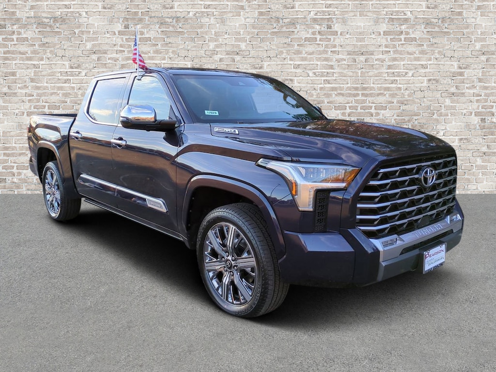 Price includes: $1000 - TMS Customer Cash . Exp. 01/05/2026 2026 Toyota Tundra Hybrid Capstone Bluprint 3.4L V6 4WD 10-Speed Automatic3.4L V6.Price(s) does not include Dealer Processing Fee of $749, licensing costs, registration fees, and taxes.The Optional Features Included on this vehicles are: 3.4L V6, 12 Speakers, 3.31 Axle Ratio, 4-Wheel Disc Brakes, ABS brakes, Air Conditioning, All Weather Floor Liners, Alloy wheels, AM/FM radio: SiriusXM, Apple CarPlay/Android Auto, Auto High-beam Headlights, Auto-dimming door mirrors, Auto-dimming Rear-View mirror, Automatic temperature control, Brake assist, Bumpers: body-color, Compass, Delay-off headlights, Driver door bin, Driver vanity mirror, Dual front impact airbags, Dual front side impact airbags, Electronic Stability Control, Emergency communication system: Safety Connect (up to 10-year trial subscription), Exterior Parking Camera Rear, Front anti-roll bar, Front Bucket Seats, Front Center Armrest, Front dual zone A/C, Front fog lights, Front reading lights, Front wheel independent suspension, Fully automatic headlights, Garage door transmitter: HomeLink, Heads-Up Display, Heated and Ventilated Front Bucket Seats, Heated door mirrors, Heated front seats, Heated rear seats, Heated steering wheel, Illuminated entry, Knee airbag, Leather Shift Knob, Leather steering wheel, Low tire pressure warning, Memory seat, Navigation system: Drive Connect Cloud Navigation (1-year trial subscription), Occupant sensing airbag, Outside temperature display, Overhead airbag, Overhead console, Panic alarm, Passenger door bin, Passenger vanity mirror, Power door mirrors, Power driver seat, Power moonroof, Power passenger seat, Power steering, Power windows, Radio data system, Radio: Premium Audio with JBL, Rain sensing wipers, Rear reading lights, Rear seat center armrest, Rear step bumper, Rear window defroster, Remote keyless entry, Security system, Semi-Aniline Leather Seat Trim, Speed control, Speed-sensing steering, Speed-Sensitive Wipers, Split folding rear seat, Steering wheel memory, Steering wheel mounted audio controls, Tachometer, Telescoping steering wheel, Tilt steering wheel, Traction control, Trip computer, Turn signal indicator mirrors, Variably intermittent wipers, Ventilated front seats, Ventilated rear seats, Voltmeter, and Wheels: 22" Dark Chrome Alloy.